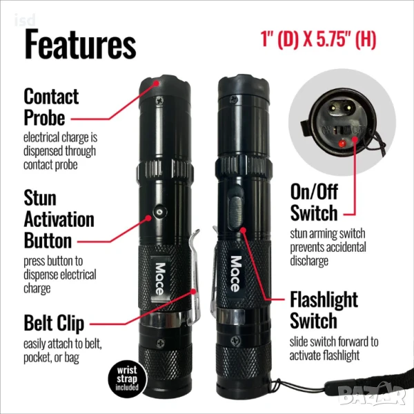 Компактният електрошок Mace® е ефективно средство за лична защита, комбиниращо мощна електрическа парализа и вградена LED светлина. Удобният му и ергономичен дизайн позволява лесно боравене и дискретно съхранение, а текстурираното покритие осигурява стабилен захват дори в стресови ситуации.