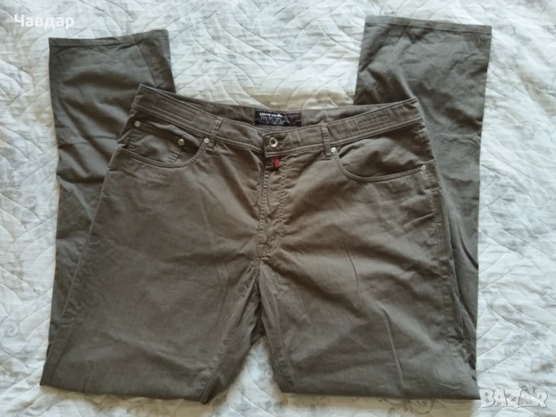 Мъжки панталон/летни дънки Pierre Cardin. Цвят - кафяв (кафеникаво-сивкав), 96% памук и 4% еластан. Размер по етикет - W42/L34 (D58/F52L/GB42 - XL/XXL). Размери: талия – 102 см., крачоли: външна дължина – 114 см., вътрешна – 86 см., широчина на крачола (долу) - 22 см. Състояние - отлично (практически нов). Цена - 20 евро. (не подлежи на коментар).