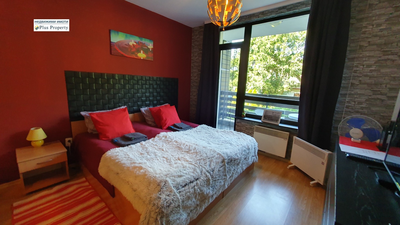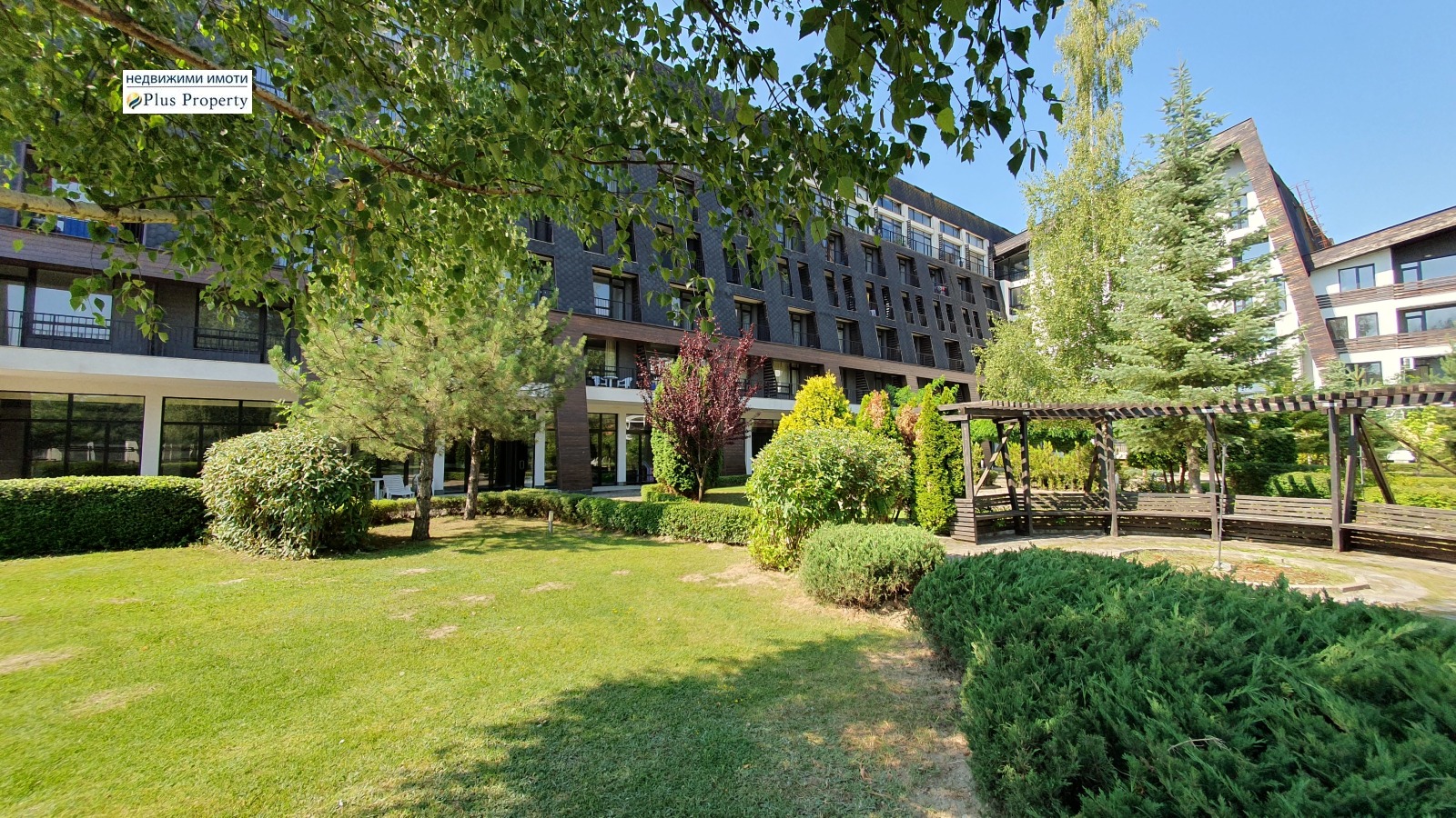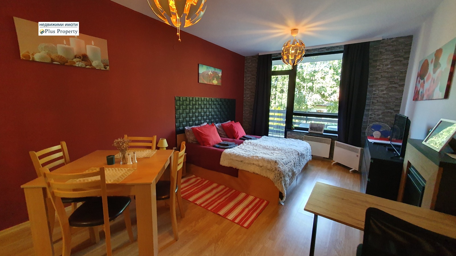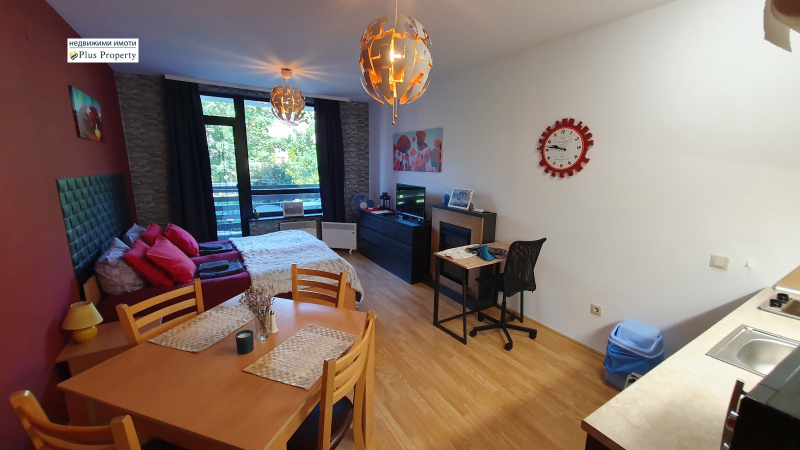 Имотът се състои от входно антре с гардероб, хол/спалня с кухненски бокс, оборудван с фурна, керамичен котлон, аспиратор и хладилник, маса за хранене, двойно легло с нощни шкафчета, скринове и телевизор. Има достъп до голям балкон с красива гледка към добре поддържаната градина на комплекса. Банята е оборудвана с вана, мивка, тоалетна и бойлер.