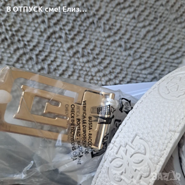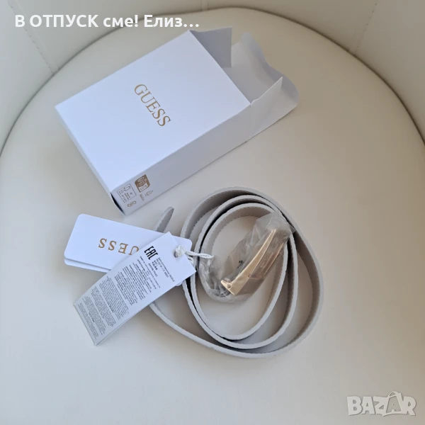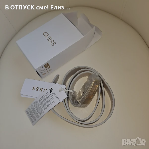 Оригинален колан GUESS бяла кожа и златна катарама размер Л → Обява 51351507