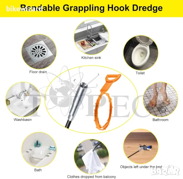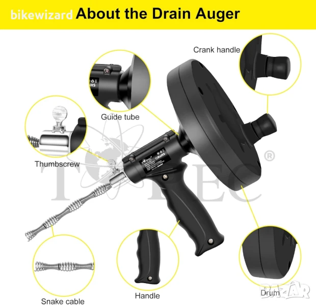 ПРОФЕСИОНАЛЕН ИНСТРУМЕНТ ЗА ОТПУШВАНЕ: TOPEC 7.62M Дренажен шнек е чудесен домакински инструмент за бързо отпушване на всякакви канали, включително кухненски и бански мивки, вани, душове и дренажни тръби. Вместо да викате водопроводчик и да получавате голяма сметка, опитайте сами да отпушите канала.