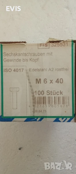 Болтове с пълна резба DIN 933, A2 – неръждаема стомана, М6x40,100бр. ✅ Внос от Германия – високо качество и прецизна изработка ✅ Материал: неръждаема стомана A2 – устойчиви на корозия ✅ Размер: М6 х 40 мм ✅ Стандарт: DIN 933 (шестостенна глава, пълна резба) ✅ Опаковка: 100 броя 📦 Изпращам с Еконт и Спиди 🚚 Безплатна доставка до офис при поръчка над 49 лв. 💡 Можете да комбинирате с други мои обяви за крепежи, за да спестите от доставката