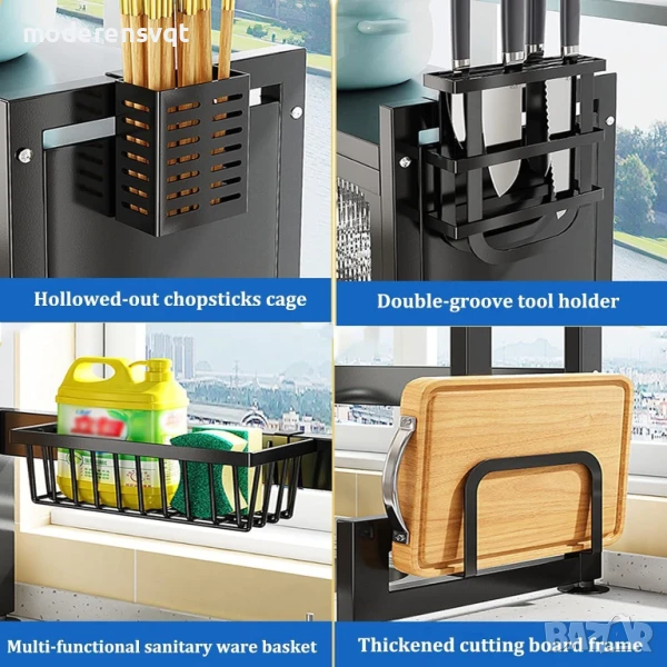 Ефективна организация: Позволява бързо и хигиенично изсушаване на съдовете, избягвайки натрупването на вода и мръсотия.