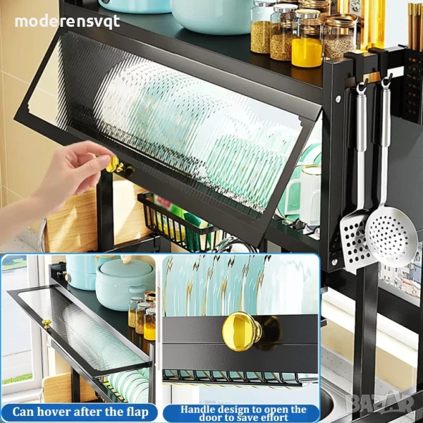 Двуетажна структура: Осигурява достатъчно пространство за поставяне на чинии, чаши и прибори за хранене, като увеличава максимално вертикалното използване на пространството.