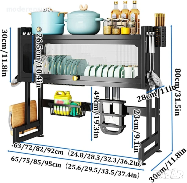 Органайзер отцедник за съдове, с 2 рафта тип рафт, дължина 65 и 85см, компактен и стилен дизайн, черен Premium неръждаема стомана