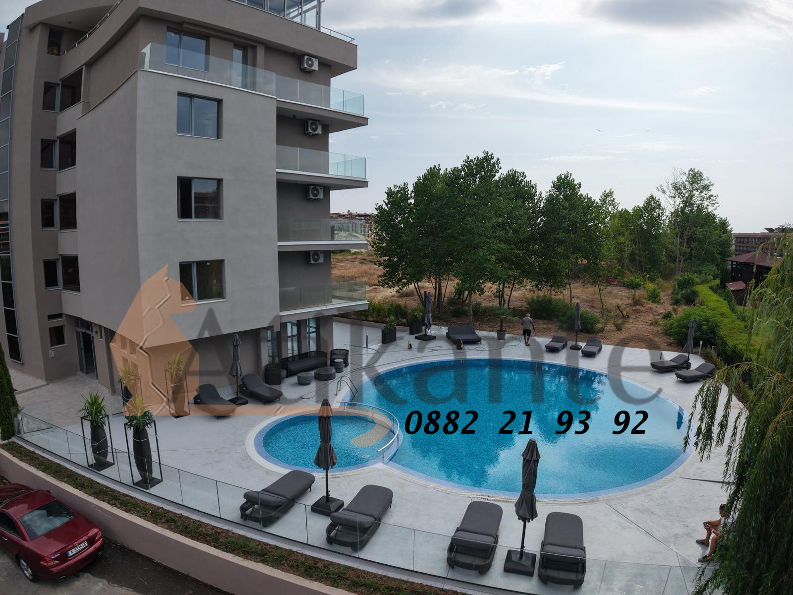 Луксозни удобства: басейн, ресторант, охрана, поддръжка, паркинг.