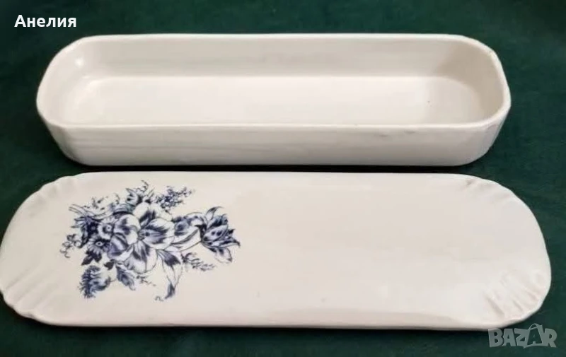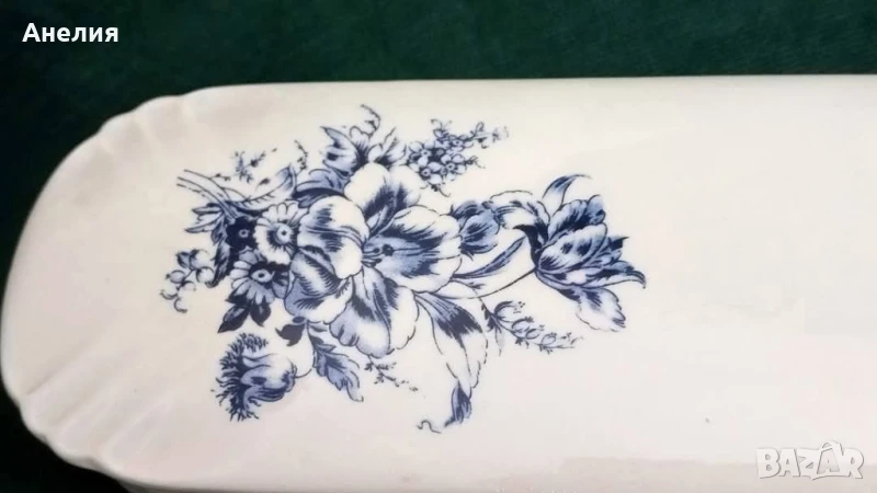 Продълговата кутия,с цвете цвят кобалт.Релеф по капака .