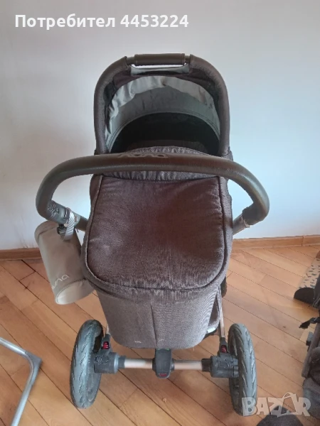Количката има зимен и летен кош, два дъждобрана, зимен чувал за летния кош, термо чанта за шишето на бебето, голям багажник.Количката е много стабилна и маневрена.В много добро състояние с нормални следи от употреба.