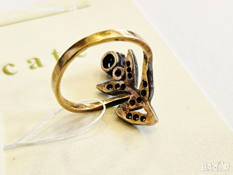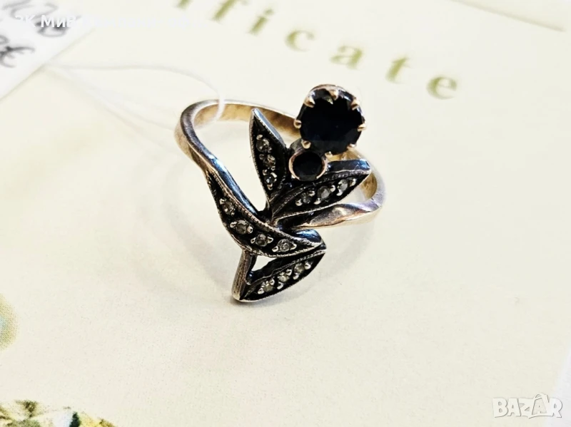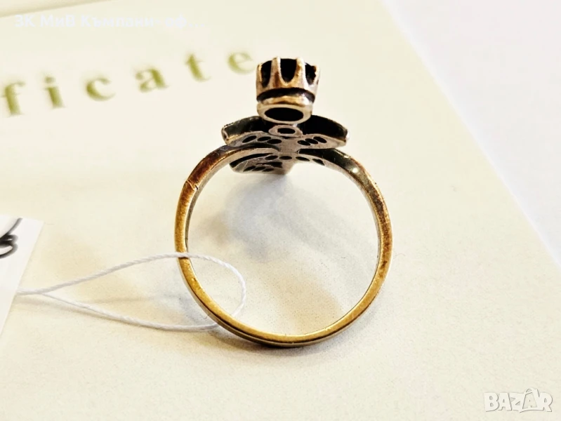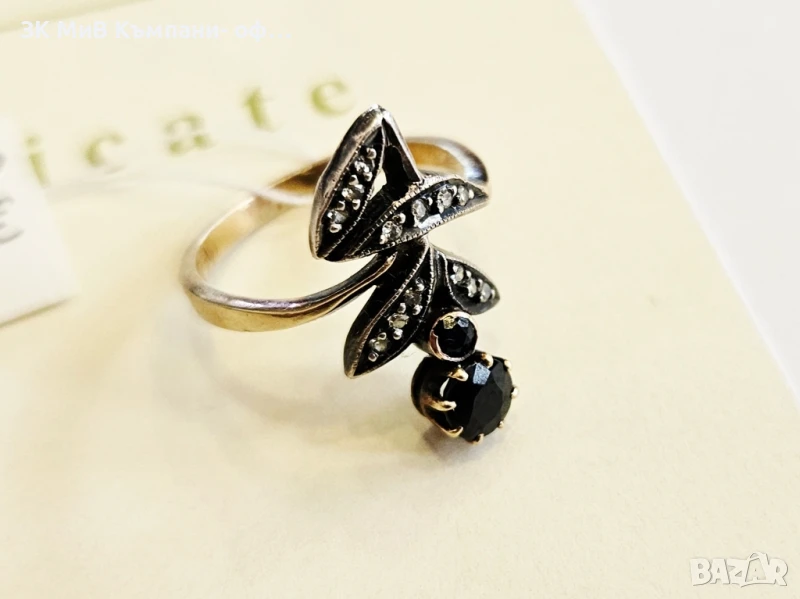 Златен пръстен с диаманти 13бр и естествен сапфир 2бр
