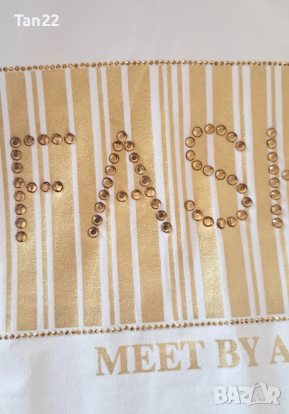 Страхотна спортна дамска тениска със принт отпред в златисто,надпис и нежни камъчета