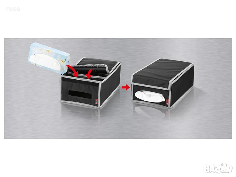 - Отделение с отвор за изваждане за кутия с носни кърпички