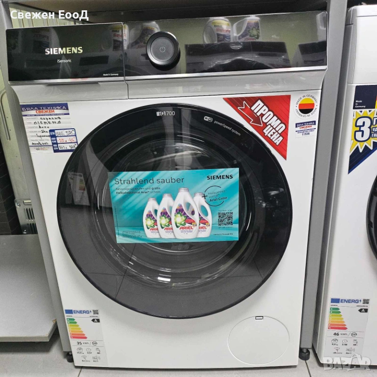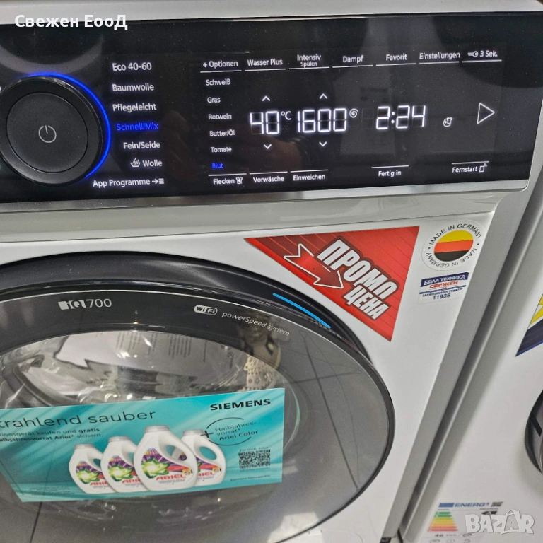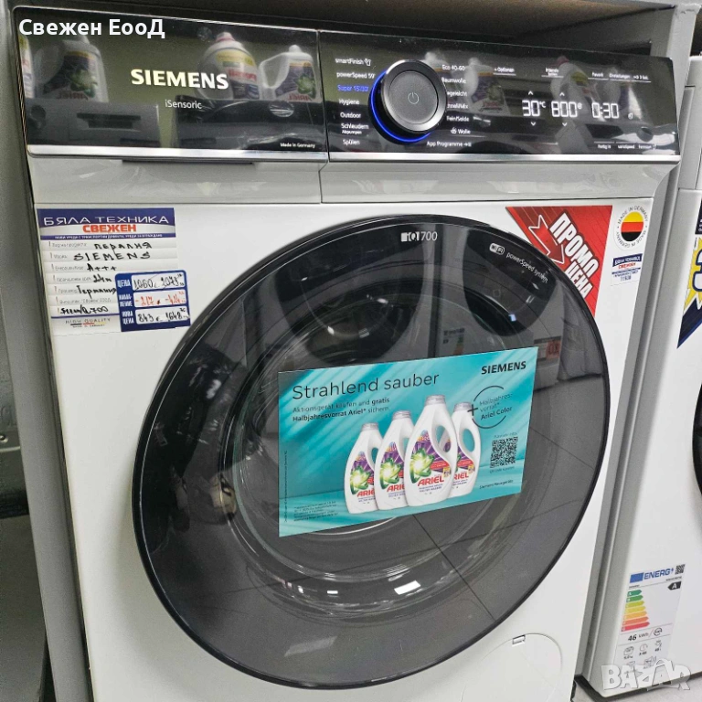 Икономична и ефикасна: с пералнята Siemens, благодарение на енергийния клас А и технологията WaterPerfect Plus, можете да постигнете оптимално използване на водата, което не само щади портфейла ви, но и околната среда.