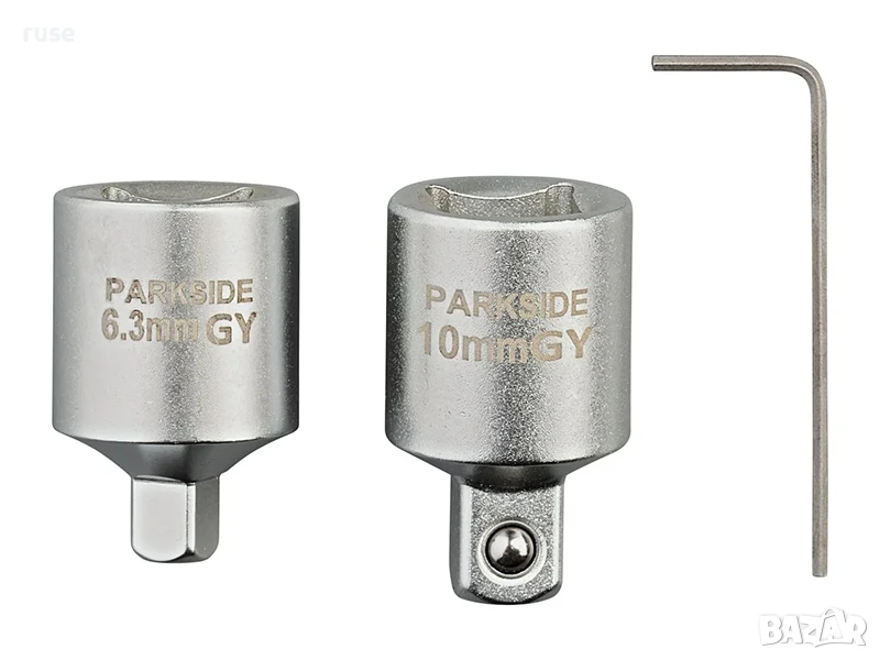 - Вкл. адаптер 1/2" вътрешен квадрат към 3/8" външен квадрат и адаптер 1/2" вътрешен квадрат към 1/4" външен квадрат