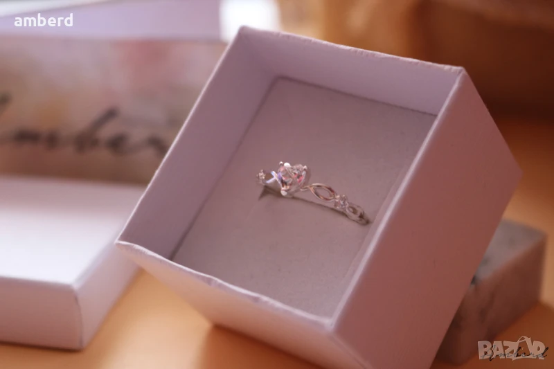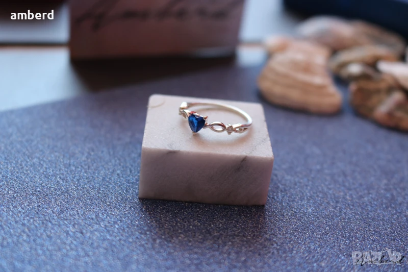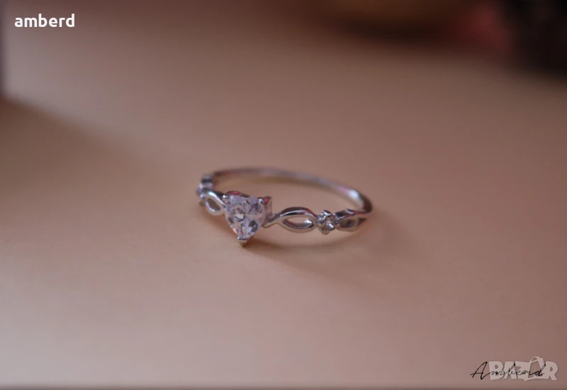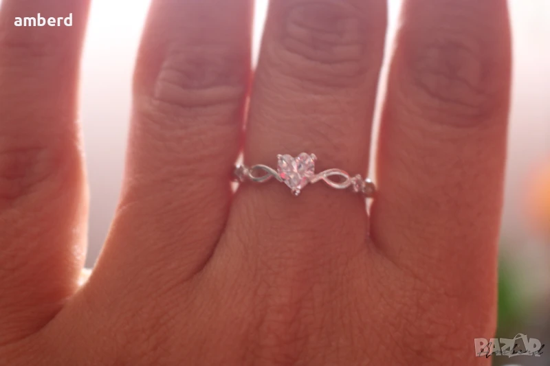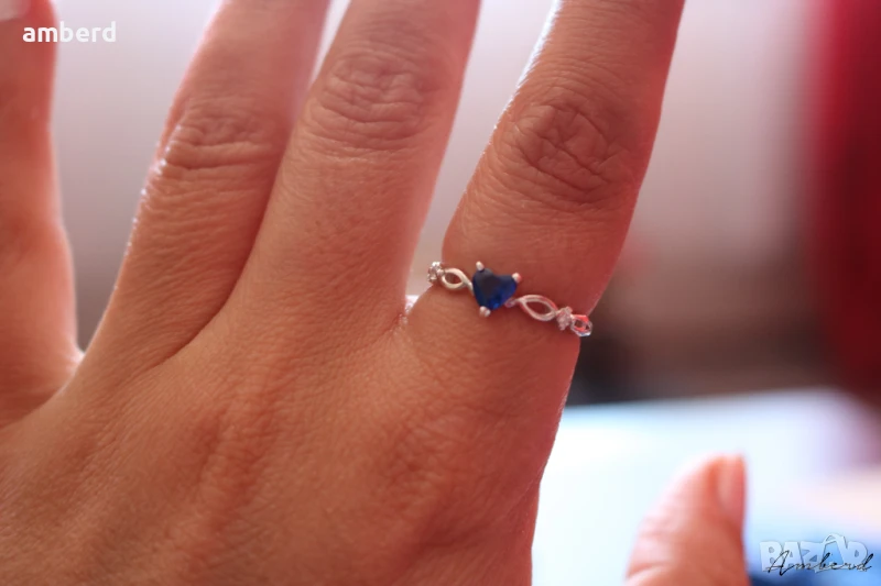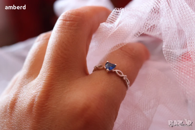 Много красив пръстен - ръчно изработен от сребро проба 925, цирконий във форма на сърце . Вътрешен диаметър - 18мм. Налични има с бял и тъмносин цирконий.