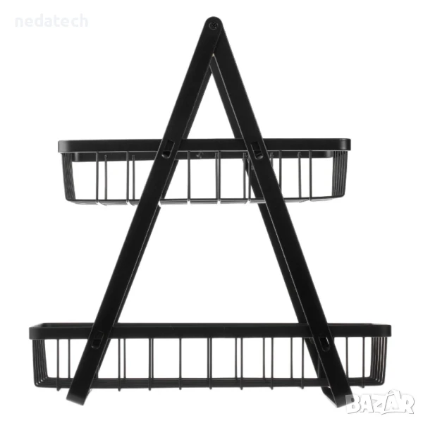 Метален рафт на две нива, Черен, 30x18x32 см.