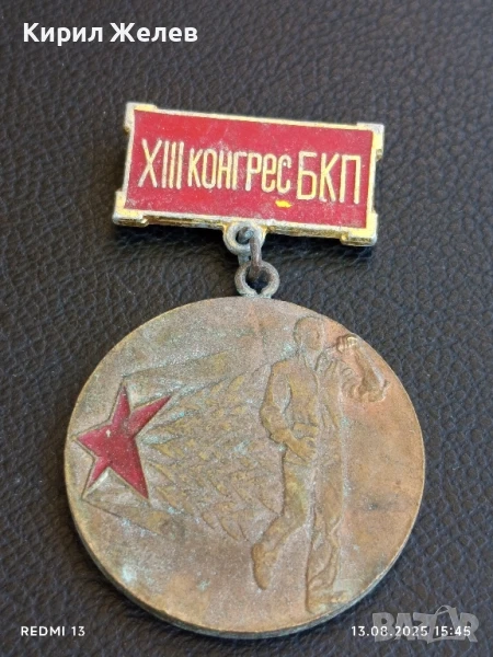 Медал от соца XIII конгрес на БКП ПЪРВЕНЕЦ в ПРЕДКОНГРЕСНОТО СЪРЕВНОВАНИЕ 17169