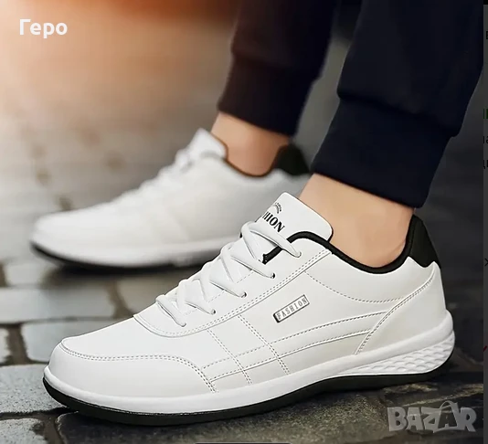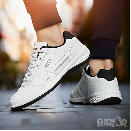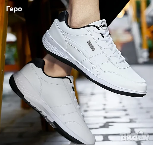 Мъжки бели маратонки. Ниски висококачествени ежедневни обувки за всеки ден. Издръжлив PU горна част, еко кожа. Дишаща вътрешна част удобна текстилна стелка. Противоплъзгаща MD подметка. Подходящи за фитнес, бягане на открито, фитнес зала. Нехлъзгащи се спортни обувки Размер 41, стелка 26 см. Изпращам с преглед и тест, лично предаване.