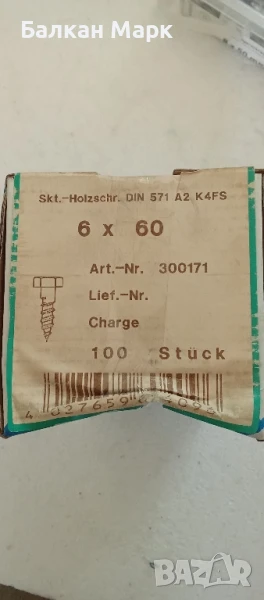 Патентни винтове 6×60 DIN 571 A2 – Неръждаема стомана, 100 бр., снимка 1 - Железария - 51354890 Патентни винтове 6×60 DIN 571 A2 – Неръждаема стомана, 100 бр., снимка 2 - Железария - 51354890 1/2