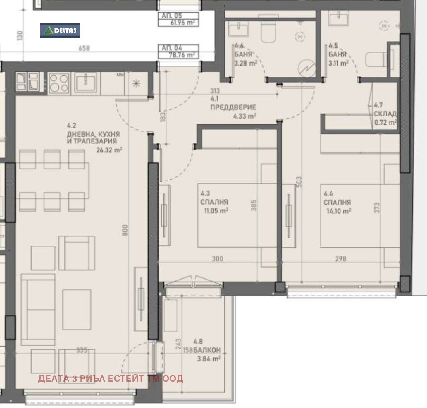 Чиста площ: 79.76 кв.м.