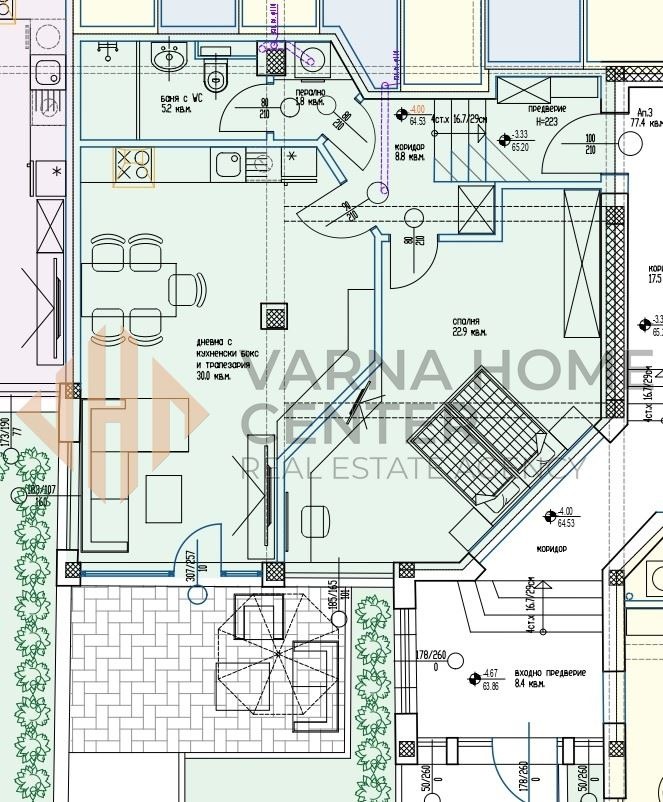дневна с кухненски бокс и трапезария с площ от 40 кв.м