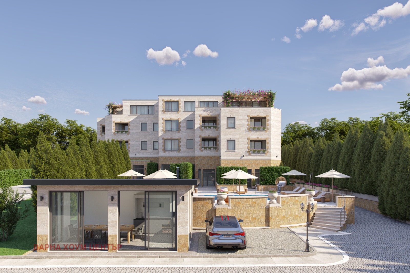 Сградата ще се отличава с модерна архитектура, висококачествени материали с директен изглед към безкрайната морска шир.