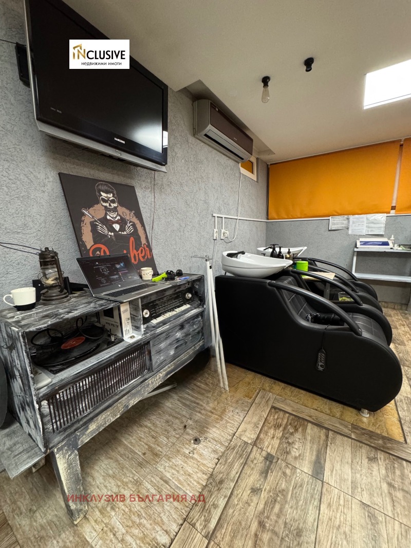 Фризьорски салон партерен търговски обект с площ 20,55 кв.м, състоящ се от фризьорско помещение и стълбище, с вход от жилищната част и връзка към фитнеса.