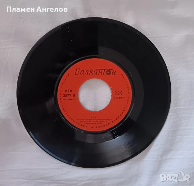 Грамофонна плоча, сингъл ФСБ "Дъждовни въпроси. Дневен сън" ВТК3877 Балкантон. 85 година. Формат 7-45об.мин. Плочата е в отлично състояние. НЯМА ОБЛОЖКА. Била е надпис вана и съм я скъса.