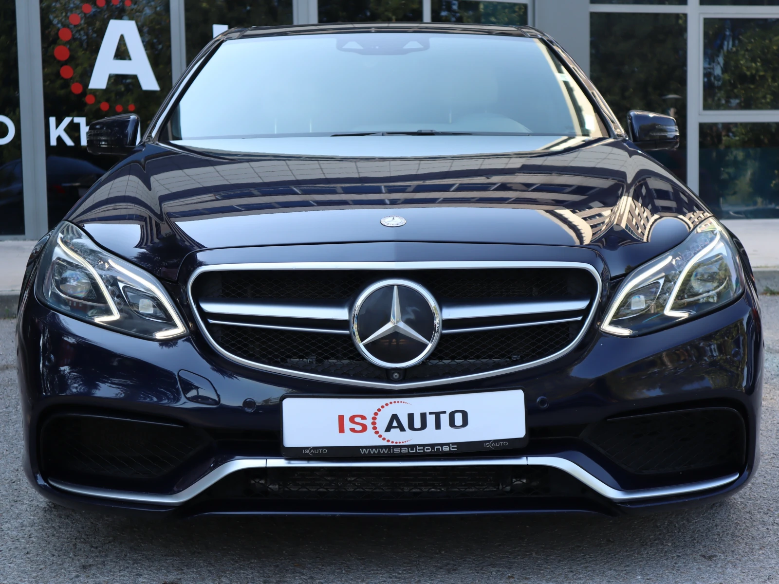 Наличен Mercedes E63 AMG Специално оборудване: Пепелник вместо отделение за съхранение, Аудио навигационна система: система за автопилот APS COMAND с навигация с твърд диск, включително вграден DVD чейнджър, осветени прагове на вратите (AMG), пакет за безопасност отзад, поставки за чаши отпред, designo Dinamica интериорна облицовка на тавана, уголемен резервоар за гориво, Media Interface (универсален интерфейс за iPod / AUX / USB / MP3), пакет Memory, електрически панорамен плъзгащ се шибедах (изцяло остъклена покривна площ), пакет Parking, система за следене на налягането в гумите, резервна гума като аварийна, сгъваеми задни седалки 1/3-2/3 с възможност за товарене на багаж и анкерни анкери, отопляема система за измиване на предното стъкло, предавател за отваряне на гаражна врата (интегриран), чанта за ски, озвучителна система Harman Kardon със съраунд система Logic7. Допълнително оборудване: Адаптивни стоп светлини, странични въздушни възглавници за водача/пътника отстрани, амбиентно осветление, AMG Optic/Styling пакет 1, контрол на буксуването при ускорение (ASR), тип задвижване: задвижване на всички колела, арматурно табло с изкуствена кожа Artico, електрически външни огледала. регулируеми и отопляеми, и двете, външни огледала в цвета на каросерията, индикатор за външна температура, предна въздушна възглавница за таза (въздушна възглавница за таза), интегриран мигач във външното огледало, спирачен асистент, боядисани спирачни апарати, дизайн и линия на оборудване Avantgarde,