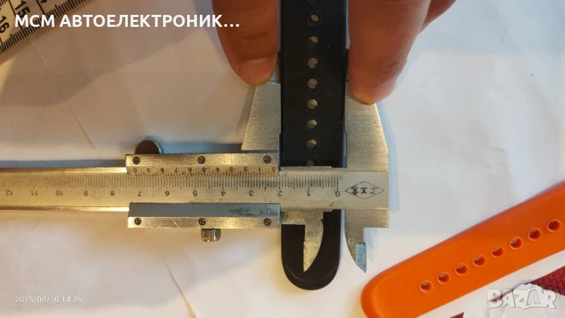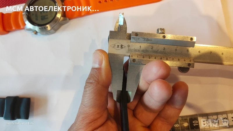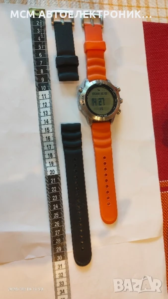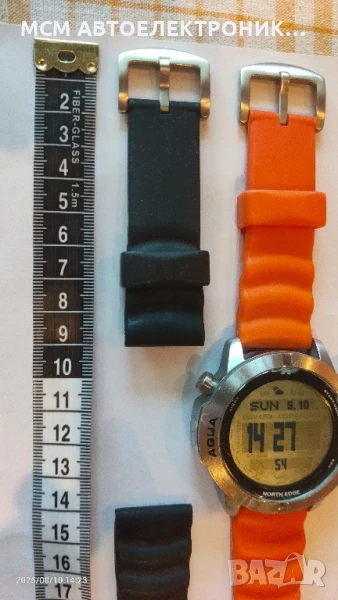 Продавам оригинална ЧЕРНА и МНОГО ДЪЛГА силиконова каишка за часовник NORTH EDGE AQUA. Каишката е неразличима от нова! Силиконовата каишка също е на фирма NORTH EDGE, поръчал съм я на дата 21.01.2025г както се вижда от една от снимките и съм платил за нея 32,60 лв. Получил съм я около 20 дни след поръчката. Каишката е неразличима от нова - във водата съм я носил 4-5 пъти, а на сушата може би 2 седмици. Винаги съм я киснал 1 час в сладка вода след всяко влизане заедно с часовника. Силиконът е с много високо качество - еластичен и здрав. Разстоянието между касите на часовника е 24мм, тоест широчината на каишката е 24mm. Предполагам, че може да се монтира на всички часовници с разстояние на касата 24mm. Размерите се виждат от снимките. Има сравнение с оранжева стандартна каишка, с която поръчах часовника като нов, но тя е къса, ако неопренът е 5mm или 7mm. Цената е 22 лв. За ВАРНА лично предаване.