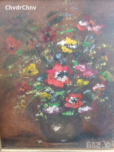(КАРТИНА 1 / натюрморт ваза с цветя) 24х22 см, масло върху дебел картон