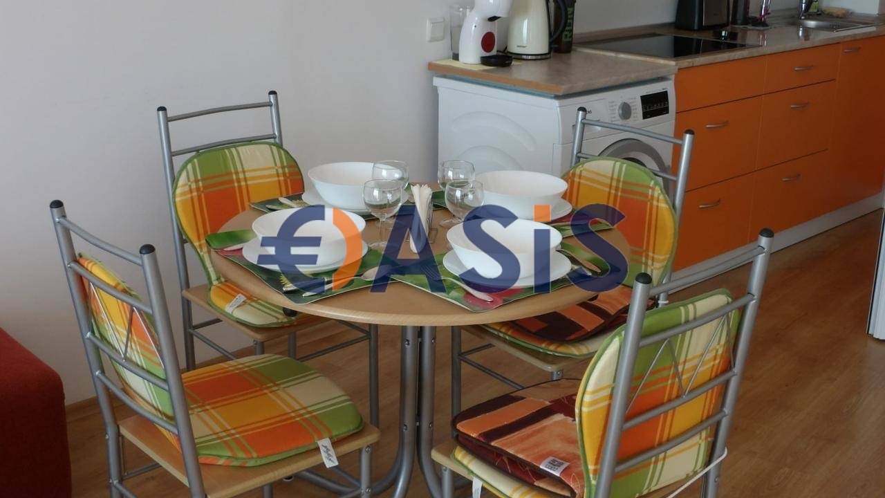 Продава се с мебели и налично оборудване: хладилник,телевизор,котлони, аспиратор,пералня, инсталиран филтър за питейна вода,микровълнова печка,климатици . Апартаментът е светъл, в отлично състояние, готов за нанасяне . Подходящ както за лятна почивка, така и за целогодишно живеене . Има индивидуални сметки за електричество и вода .