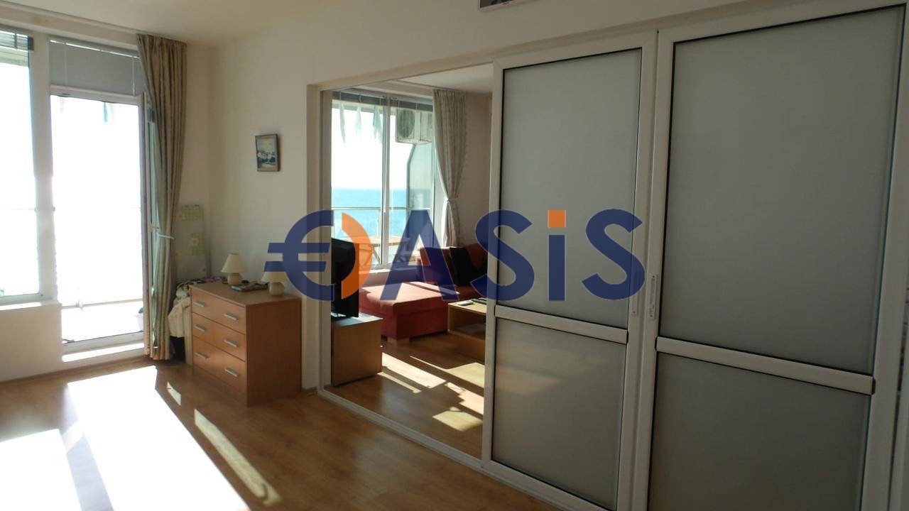 Антре, дневна с кухненски бокс, спалня, баня и тераса . Има два изхода към терасата : от спалнята и от хола .От терасата се открива директна панорамна гледка към морето .