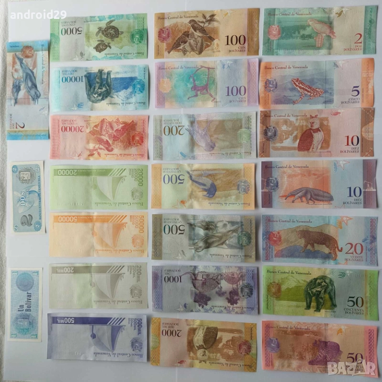 24 броя Банкноти Боливари, Венецуела, UNC → Обява 51359677