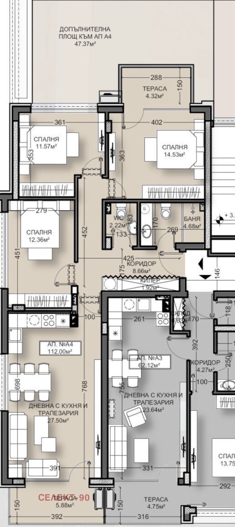Продава се Четиристаен апартамент 196500 със тераса от 47 кв.м. на цена 21150 обща цена 217650 във нова модерна и съвременна сграда! Сградата е със Акт 14 предстои Акт 15 - 2026 г. От апартамент се открива прекрасна гледка! Възможност за закупуване на подземни паркоместа при цена от 15500 за повече информация на тел 0885712440 Без комисионна от купувача!