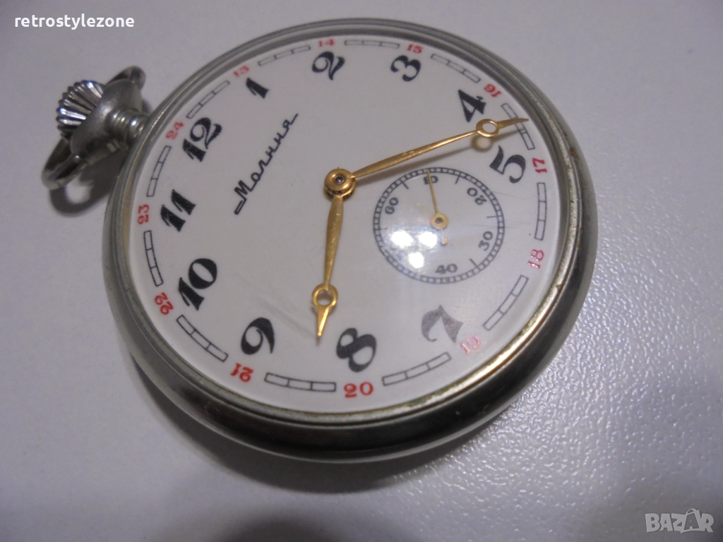 Стар автентиченджобен часовник “Молния” (Molnija), произведен в бившияСССР. Това е един от класическите съветски механични модели, ценени от колекционери заради надеждността, простия, но прецизен механизъм и характерния ретро дизайн.