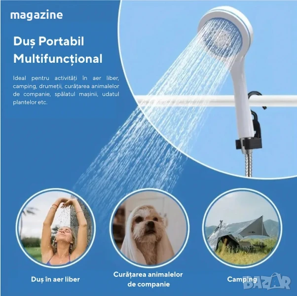 Превърни преживяванията си на открито в нещо още по-комфортно с този лек и практичен преносим душ.