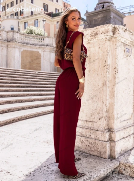 Комплектът от блуза с къс ръкав и панталони Nunziaa е изключително стилен и удобен вариант за ежедневно носене. Свободната му кройка позволява пълна свобода на движение, а цветът добавя модерен, градски щрих. Този комплект се съчетава перфектно с актуалните тенденции, без да жертва класическата елегантност. Блузата с къс ръкав се драпира красиво, а широките панталони я балансират чудесно. Благодарение на еластичната талия и закопчаването с връзки, панталоните стоят перфектно. Този комплект предлага безкрайни възможности за стилизиране – можете да го носите като едно цяло или да го комбинирате с други артикули от гардероба си. Перфектен както за ежедневно носене, така и за по-спокойни дни, това е визия, която е подходяща за различни поводи, независимо от сезона. Просто добавете любимата си чанта, обувки и бижута – и сте готови! Простотата на този комплект се крие в най-голямата му сила – стил, комфорт и гъвкавост в едно.