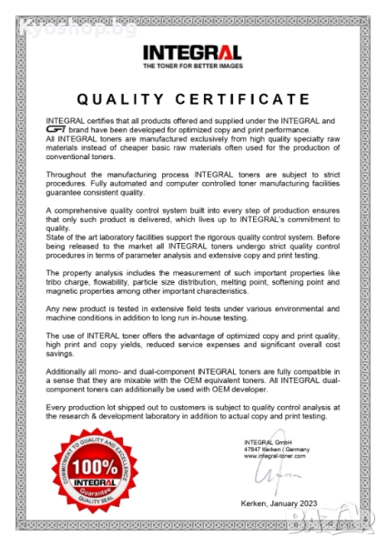Висококачествен тонер произведен по европейски стандарти от Integral - Германия