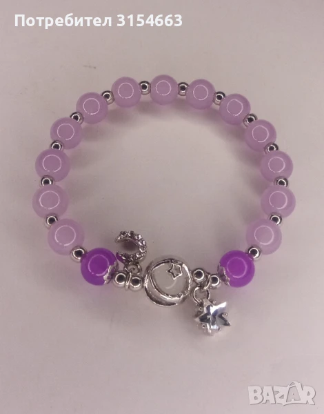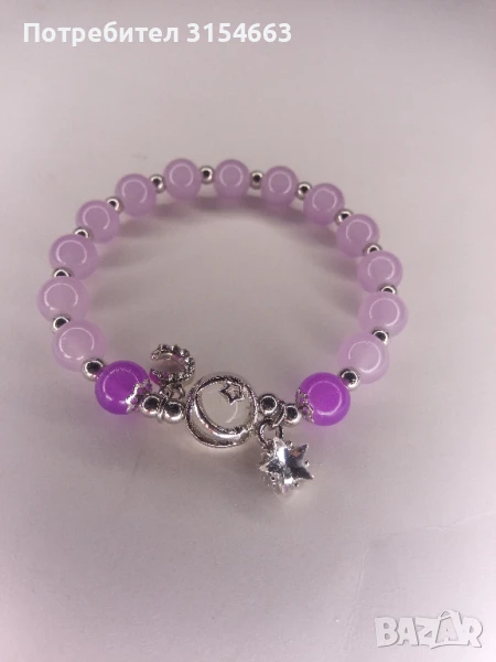 Гривна от мъниста. С висулки луна и звезда. Диаметър 6 см. Разтяга се. Висулки 1 см.