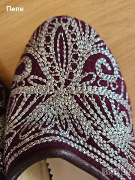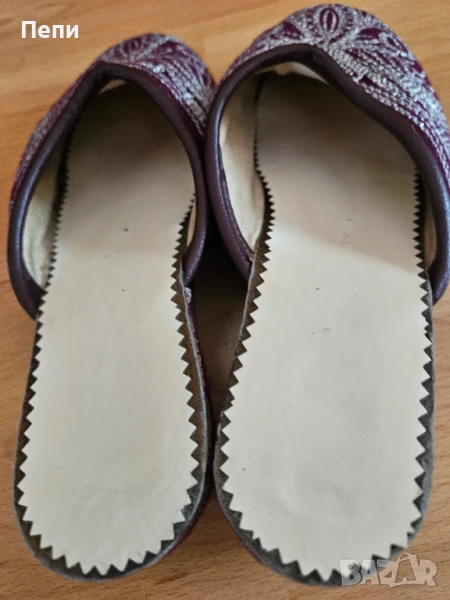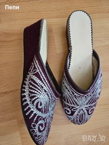 Везани, домашни родопски чехли р-р 37. Основният плат е вълна.
