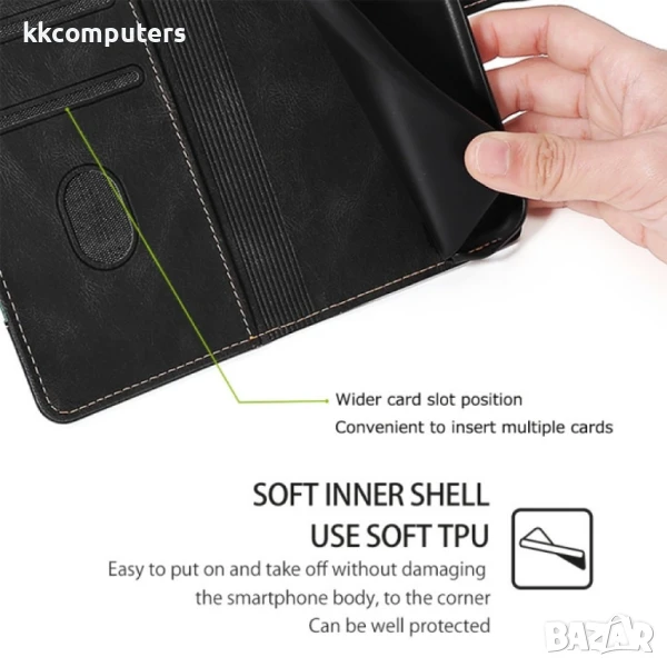 Приляга идеално към телефона. Защитава гърба, дисплея и в същото време има приятен и класически дизайн - тип книга. Не увеличава размера на Вашия OPPO Reno11 F 5G съществено.