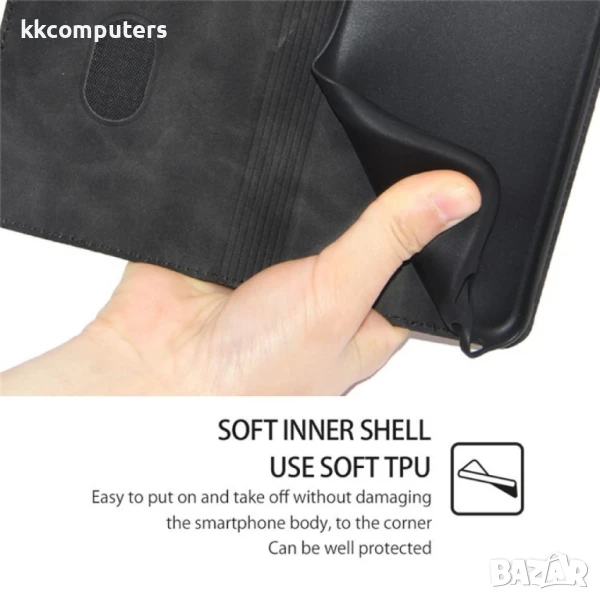 Приляга идеално към телефона. Защитава гърба, дисплея и в същото време има приятен и класически дизайн - тип книга. Не увеличава размера на Вашия OPPO Reno11 F 5G съществено.
