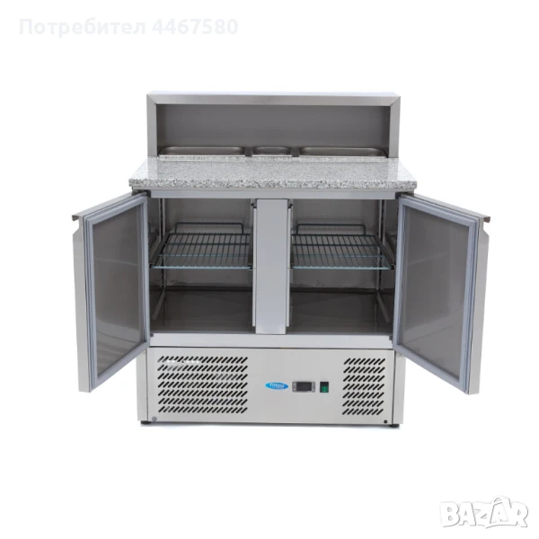 Предлагаме професионална хладилна маса с вградена GN витрина, съчетаваща в едно решение охлаждане и удобна работна повърхност за подготовка на храни. Подходяща за ресторанти, пицарии, сандвич-станции, закусвални и всички натоварени кухни в HORECA сектора.