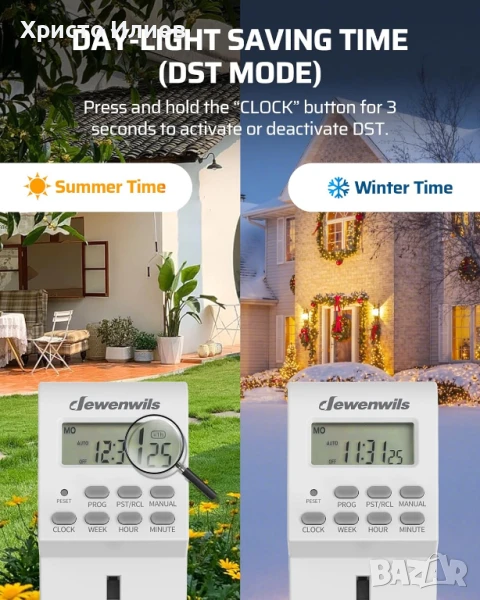 - ЛЕСНО ЗА ПРОГРАМИРАНЕ - Таймерът е лесен за програмиране, режимът на лятно часово време може да се активира чрез натискане на бутона за часовник за 3 секунди.