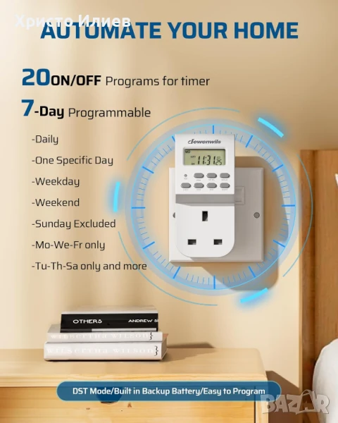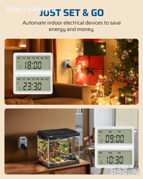 - ЕНЕРГОПЕСТЯВАНЕ - Автоматично включване/изключване на лампа, коледни светлини на кафемашина, овлажнители, аквариум, аквариум и други уреди по ваш график, за да спестите пари от прекомерна употреба на електричество в дома, както и да рационализирате ежедневието си.