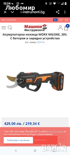 Акумулаторна ножица WORX WG330E/ 20V/ 2Ah