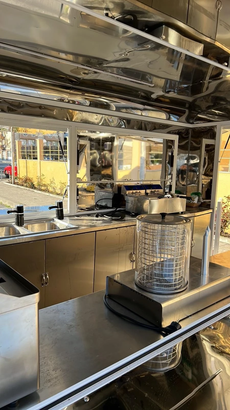 Каравана за бързо хранене. Готова за въвеждане в експлоатация. В перфектно състояние. Караваната е напълно оборудвана: - професионален фритюрник с две отделения по 10 л. , - хромирана ел. скара с гладка повърхност, - машина за Хот-дог, - хладилник. - Неръждаеми плотове и шкафове - Мивки