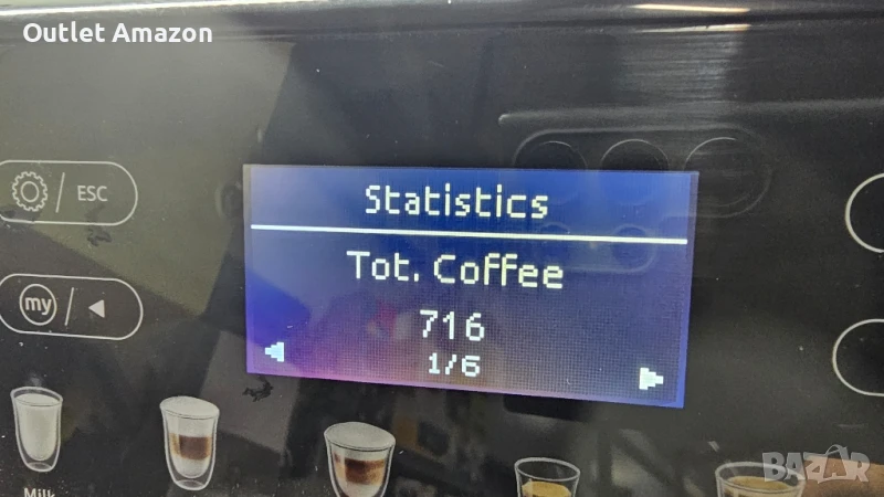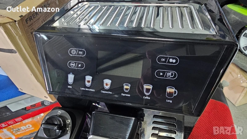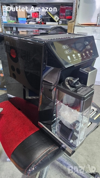 Кафе и млечни напитки с натискане на бутон, включително 2 чаши еспресо едновременно; Кремообразна и гъста млечна пяна, благодарение на автоматичната система LatteCrema; Широка гама от рецепти: 6 директни напитки с едно докосване и много повече в менюто за напитки; LCD дисплей с цветни икони за улесняване на взаимодействието и увеличаване на удоволствието. Интегрираната технология за смилане предлага винаги прясно смляно кафе. Нивото на смилане може да се регулира според вкуса. Коничните стоманени шлифовъчни машини са калибрирани до 100% точност. Най-прясното кафе Cea mai proaspata cafea Системата De'Longhi Tubeless намалява количеството кафе на прах, останало в мелницата до минимум, така че само прясно смляно кафе се използва за приготвяне на еспресото. Контрол на температурата Controlul temperaturii Усъвършенстваната система Thermoblock гарантира прецизен контрол на температурата на приготвяне за оптимално извличане на кафе. Лесно почистване Curatare usoara За оптимална хигиена, каната е снабдена с интегрирана функция за почистване: след приготвяне на напитките всички части, които са в контакт с млякото, автоматично се измиват с гореща вода и пара. Спецификации: Размери(w x d x h): 26x46,9x36,1 см; Тегло: 11 кг; Двоен +: ✓ Номинално напрежение/честота(V ~ Hz): 220-240 V ~ 50/60 Hz; Входна мощност(W): 1450; Цвят: черен; Налягане на помпата(бар): 15; Дисплей: графичен LCD дисплей; Капацитет на контейнера за зърна: 380 г; Контейнер за утайка от кафе (брой): 13✓ Функция "ДЪЛГО" кафе: ✓ Контрол на вкуса: ✓ Автоматично почистване: ✓ Автоматично изключване: ✓ Използване на смляно кафе: ✓ Поставка за чашата: ✓Система De'Longhi LatteCream: ✓ Програма за отстраняване на котлен камък, почистване и изплакване: ✓ Функция за пестене на енергия: ✓ Нова безшумна мелница с 13 настройки: ✓ Превключвател на захранването: ✓ Програмируема твърдост на водата: ✓ Бърза пара: ✓ Подвижен дренажен съд с индикатор за ниво: ✓ Разглобяем блок за инфузия: ✓ Подвижен резервоар за вода: ✓ Избор за 1 чаша: ✓ Избор за 2 чаши: ✓