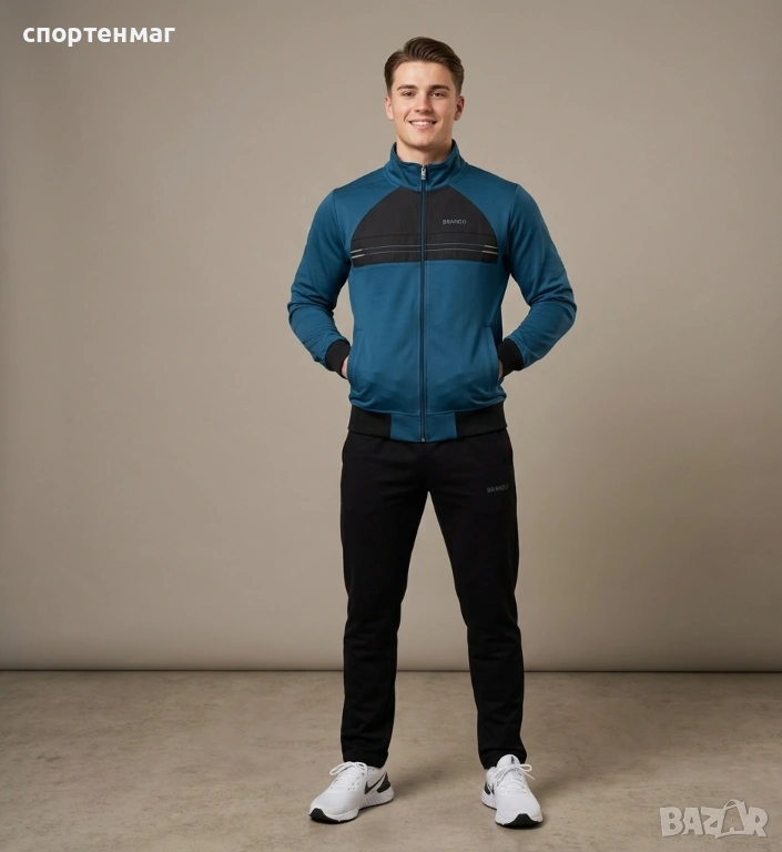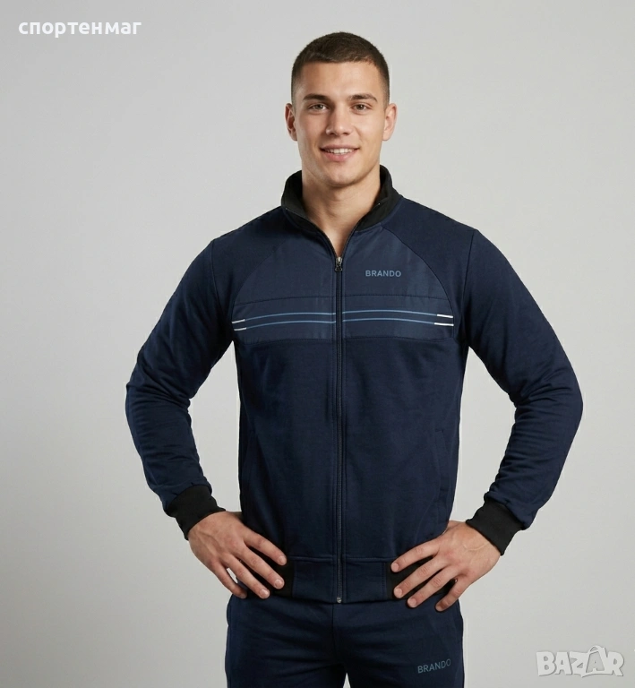 Обновете гардероба си с този изключително комфортен мъжки спортен екип. Проектиран за максимално удобство при движение, този спортен комплект е идеалният избор за ежедневието или активни тренировки. Изработен от висококачествена материя, той запазва формата и цвета си дори след многократни изпирания.