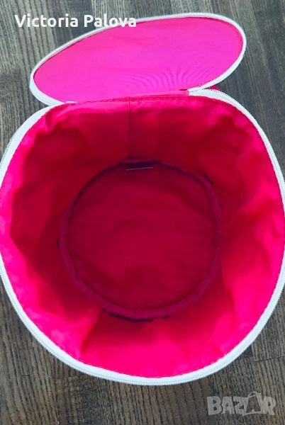 Диаметър -18см, височина - 14см. Удобен красив несесер за козметика с двоен цип на капака.